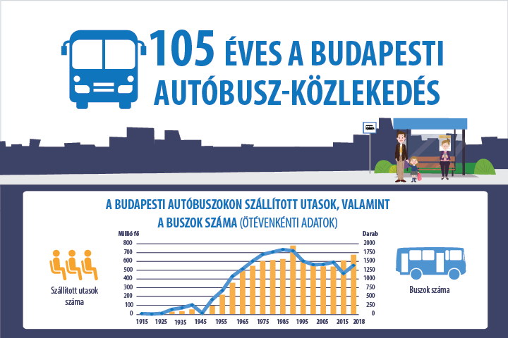 105 éve, 1915. március 1-jén indult el Budapesten az első autóbuszjárat. Az Andrássy úton közlekedett legelső jármű egy Austro-Daimler Tudor típusú, elektromos meghajtású, emeletes autóbusz volt. Napjainkban az autóbuszos közlekedés a főváros legfontosabb közösségi közlekedési típusát jelenti, 100 utazásból 43 buszok révén valósult meg.