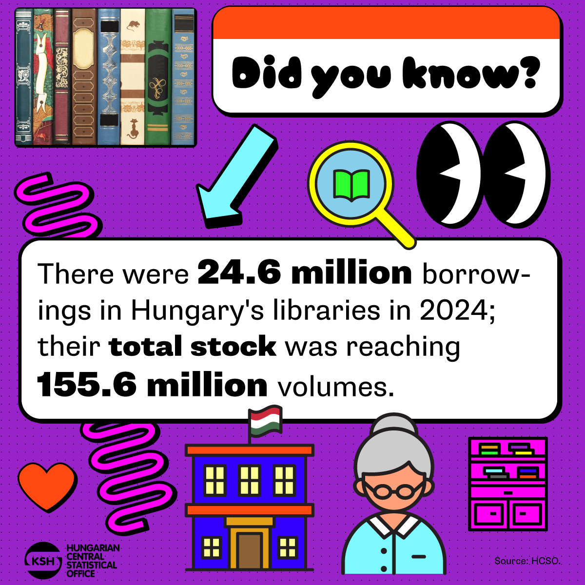 There were 24.6 million borrowings in Hungary's libraries in 2024; their total stock was reaching 155.6 million volumes.