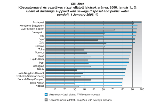 - Share of dwellings supplied with sewage disposal and public water conduit, 1.I.2006. %