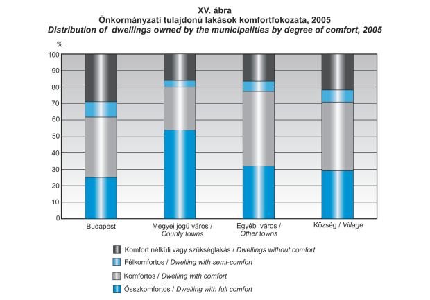 - Distribution of dwellings owned by the municipalities by degree of comfort, by settlement types, 2005