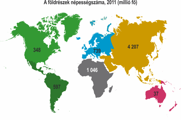 | Földrész | 1950 | 1980 | 2011 | 2050 | 2100 |